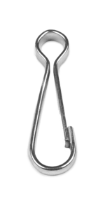 Карабін пружинний грушоподібної форми застосовується в якості кріплення для ланцюгів. Використовується в домашньому господарстві для міцного захоплення і фіксації ланки ланцюга або ременя на низьких навантаженнях. Увага! Даний карабін не призначений для використання при підйомах!